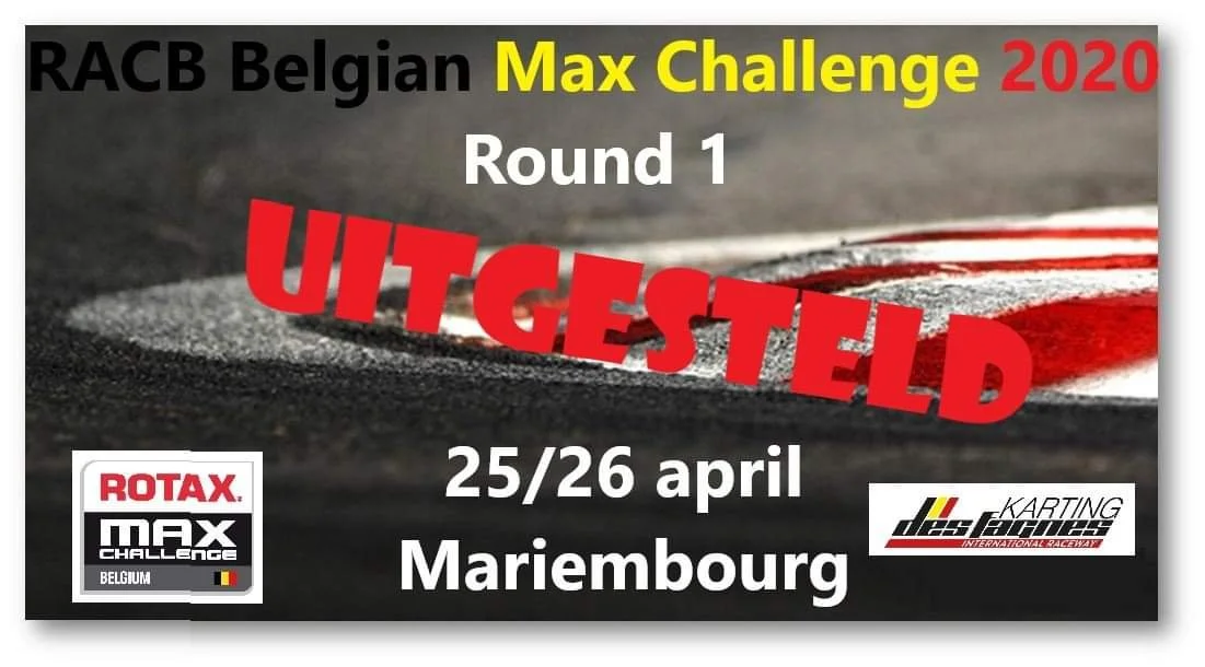 De Belgische regering heeft de bestaande Covid-19 maatregelen verlengd tem 19 april, met de mogelijkheid om deze tem 3 mei te verlengen. Het organiseren van kartwedstrijden zit ons in het bloed. Net zoals jullie erop staan te springen om eindelijk weer wat meters op het asfalt te maken. Echter, er zijn te veel onduidelijkheden voor ons als organisatie wat precies de mogelijkheden zijn, zeker gelet op de mogelijke verlenging van de maatregelen tem 3 mei 2020. Hierdoor hebben wij het drastische besluit moeten nemen om de 1ste ronde van het Belgisch Rotax Max Challenge te Mariembourg, die gepland staat op 25/26 april 2020 af te gelasten.